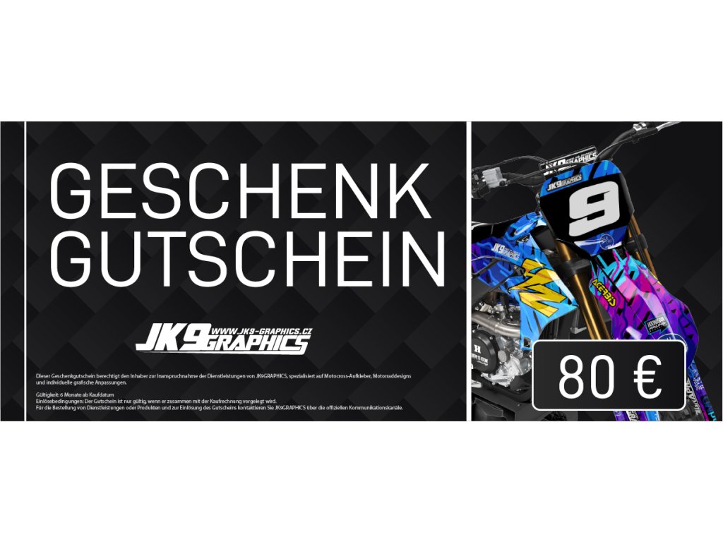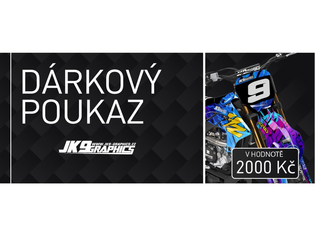 Dárkový poukaz umožňuje obdarovanému využít částku na nákup v celém eshopu JK9 Graphics.