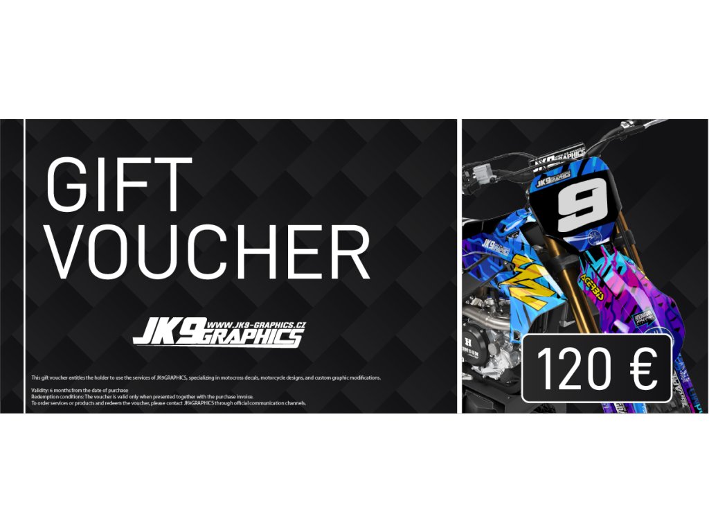 Dárkový poukaz umožňuje obdarovanému využít částku na nákup v celém eshopu JK9 Graphics.