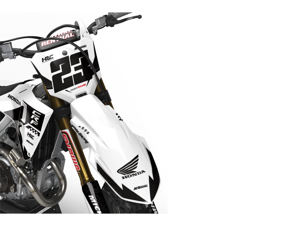 - Bestellen Sie Ihr Dekor – geben Sie Ihre Daten an (Name, Nummer, Logos, Motorradmodell).