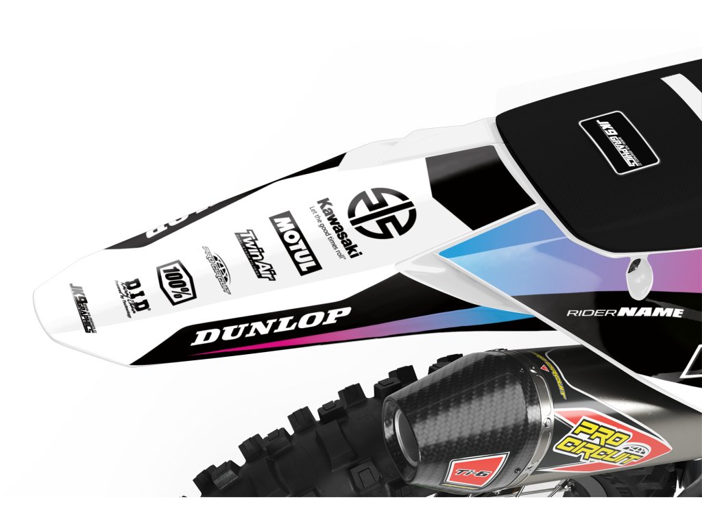 - Bestellen Sie Ihr Dekor – geben Sie Ihre Daten an (Name, Nummer, Logos, Motorradmodell).