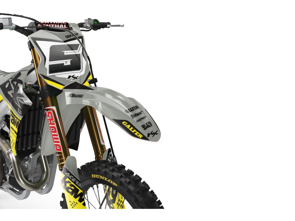 - Bestellen Sie Ihr Dekor – geben Sie Ihre Daten an (Name, Nummer, Logos, Motorradmodell).