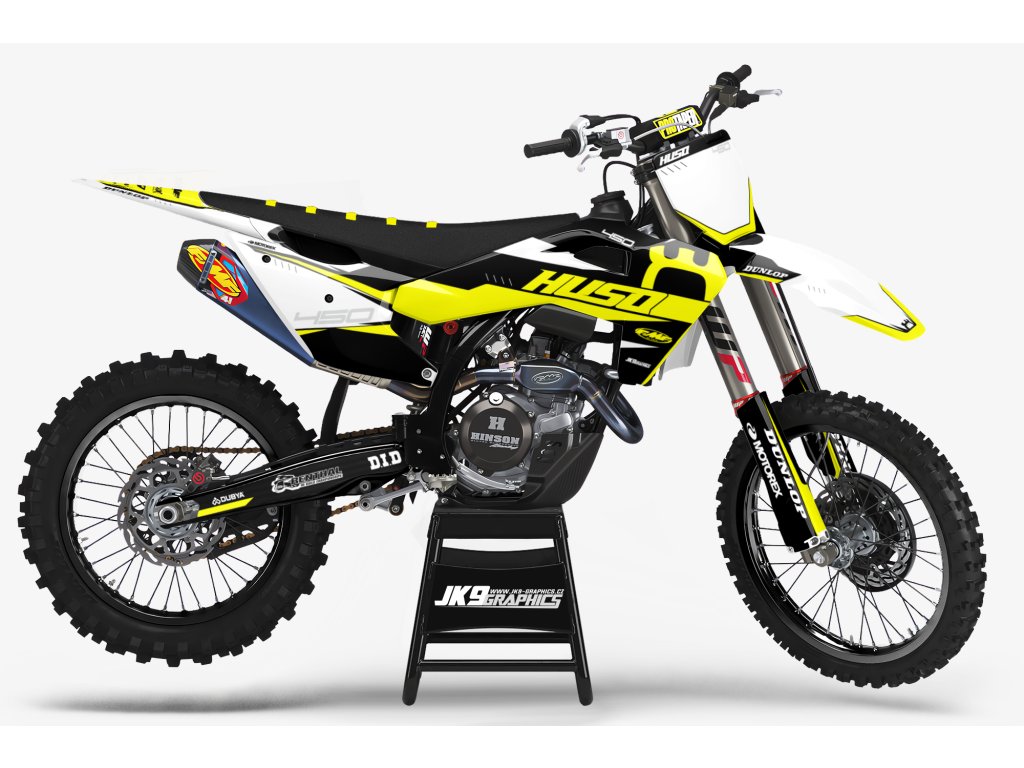 Shrouds / Tank, Side number plates, Airbox, Rear fender, Front fender, Front number plate, Fork guards, and Swingarm.