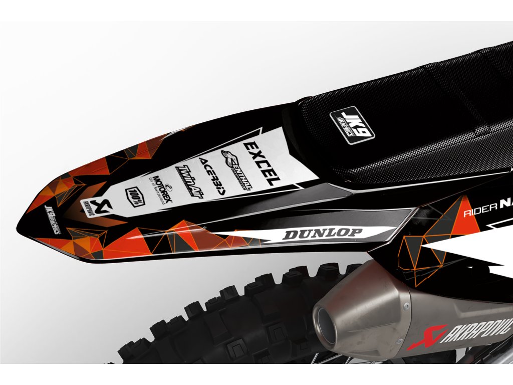 Shrouds / Tank, Side number plates, Airbox, Rear fender, Front fender, Front number plate, Fork guards, and Swingarm.