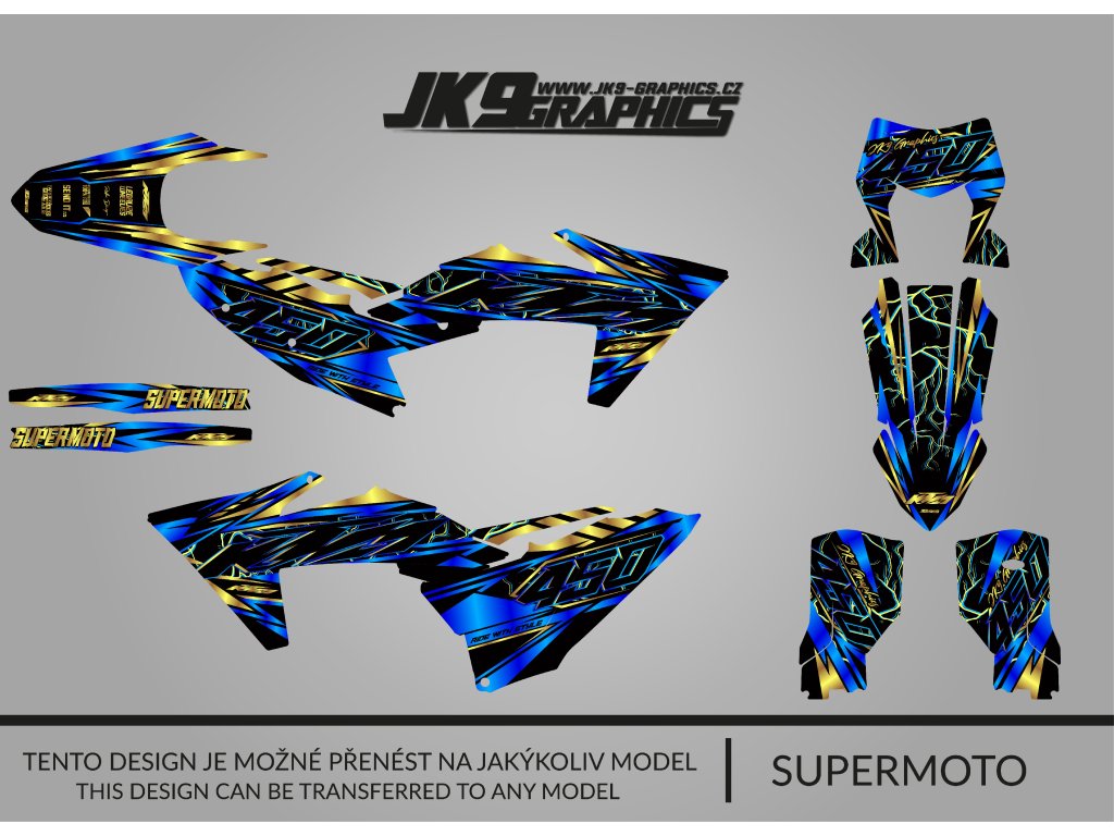 Shrouds / Tank, Side number plates, Airbox, Rear fender, Front fender, Front number plate, Fork guards, and Swingarm.