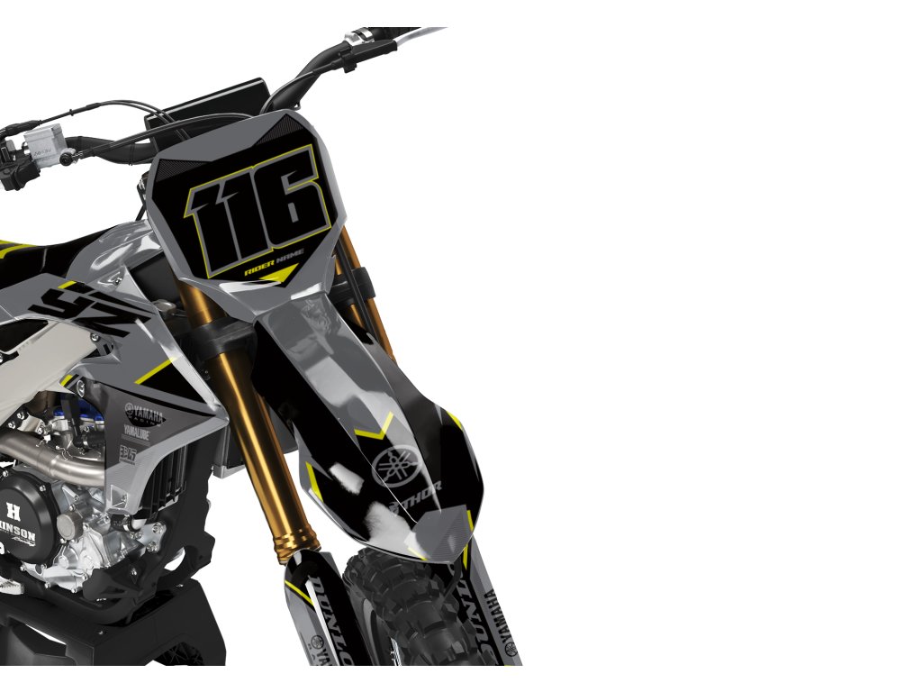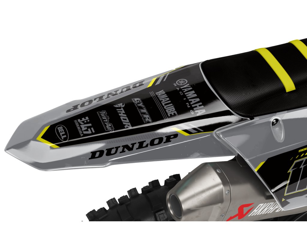 Shrouds / Tank, Side number plates, Airbox, Rear fender, Front fender, Front number plate, Fork guards, and Swingarm.