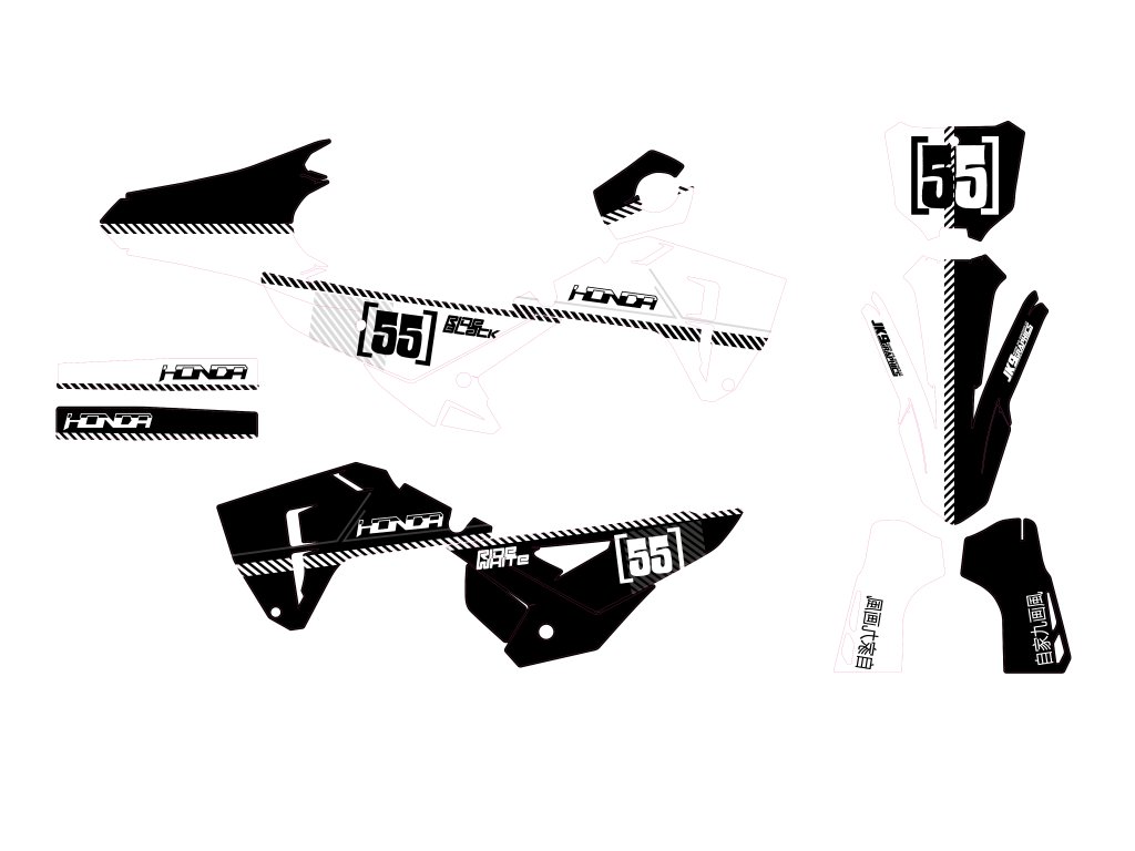 Každá sada zahrnuje polepy pro tyto části motocyklu: