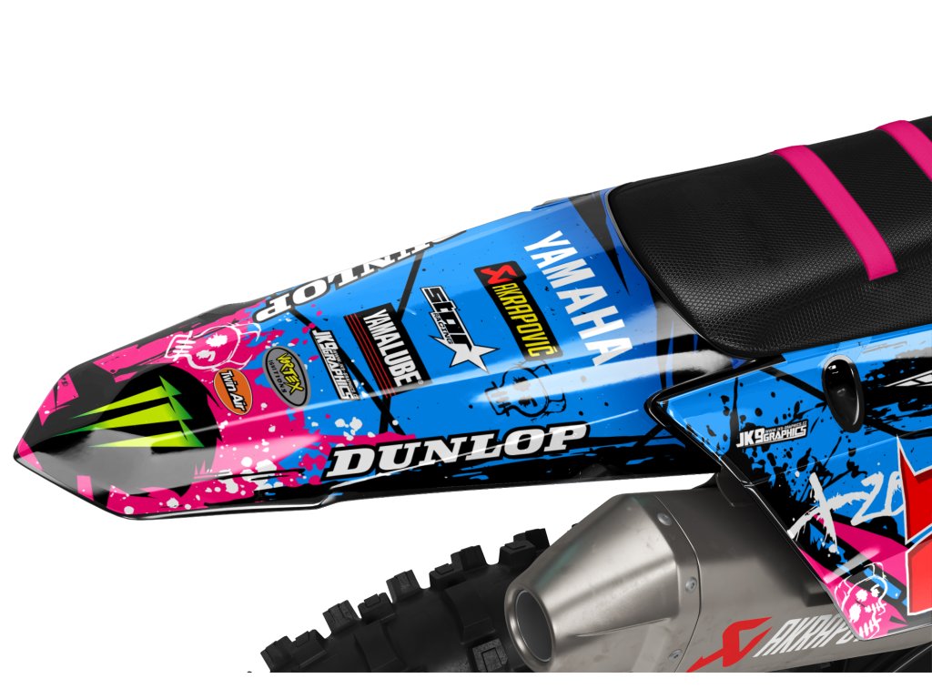 Každá sada zahrnuje polepy pro tyto části motocyklu: